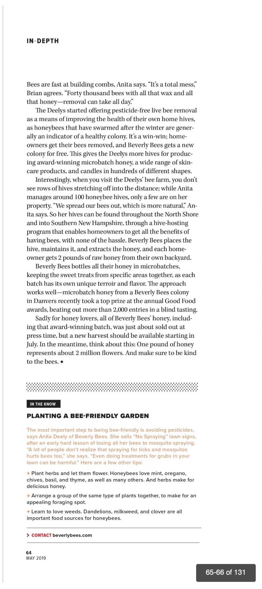 “Bee Nice – Beverly Bees Helps People Help Honeybees” – Northshore Magazine – May 2019