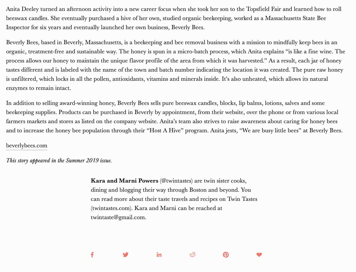 Boston Globe –Beekeepers find new ways to cook with honey